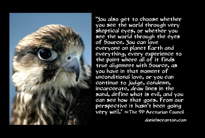 "We have told you this on a number of occasions when it comes to the predictions that you see so often there in the new age community. You also get to choose whether you see the world through very skeptical eyes, or whether you see the world through the eyes of Source. You can love everyone on planet Earth and everything, every experience to the point where all of it finds true alignment with Source, as you have in that moment of unconditional love, or you can continue to judge, condemn, incarcerate, draw lines in the sand, define what is evil, and you can see how that goes. From our perspective it hasn’t been going very well, and we understand that it is easier for us because we have no physical bodies to protect, we have no possessions, we have no need for wealth.